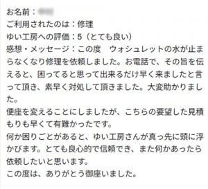 何か困りごとがあると、ゆい工房さんが真っ先に頭に浮かびます。とても良心的で信頼でき、また何かあったら依頼したいと思います。