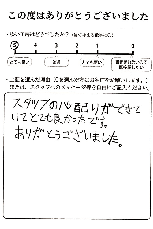 スタッフの心配りができていてとても良かったです。ありがとうございました。