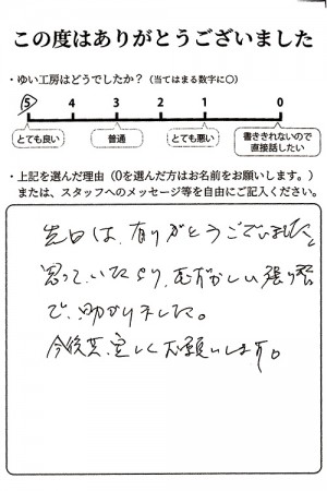 お客様の声は何よりの励みです、いつもありがとうございます!