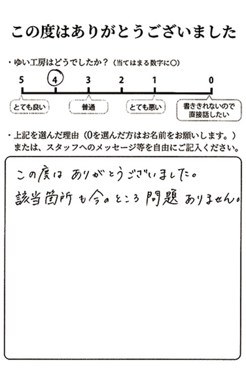 この度はありがとうございました。該当箇所も今のところ問題ありません。