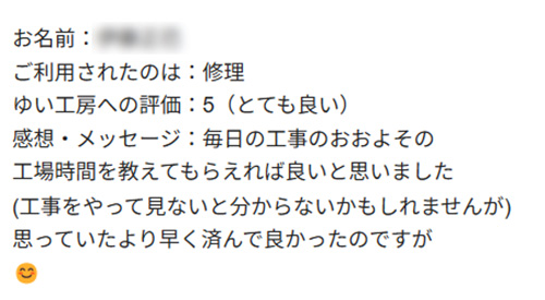 毎日の工事のおおよその工場時間を教えてもらえれば良いと思いました。(工事をやって見ないと分からないかもしれませんが)