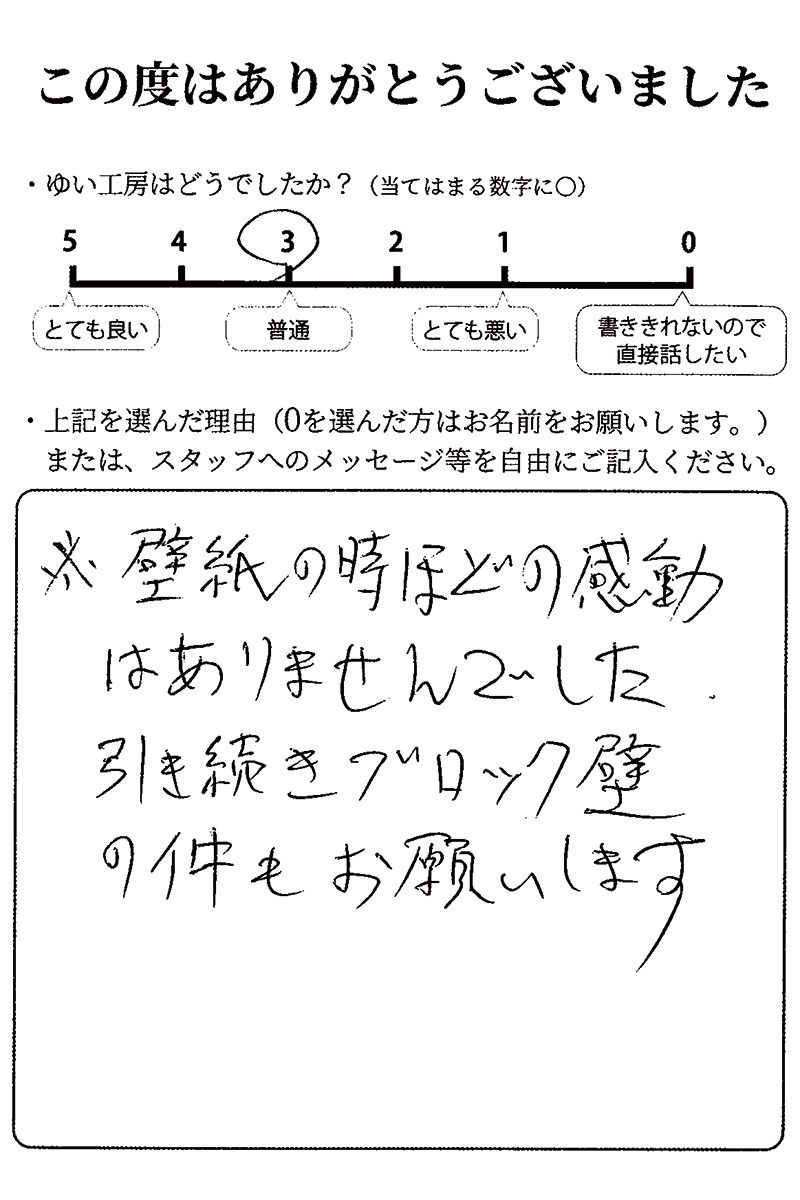 壁紙ほどの感動はありませんでした。引き続きブロック塀の中もお願いします。