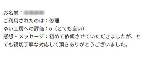 初めて依頼させていただきましたが、とても親切丁寧な対応して頂きありがとうございました。