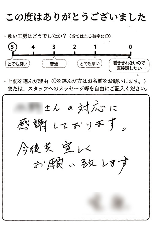 (担当者名)さんの対応に感謝しております。今後とも宜しくお願い致します。