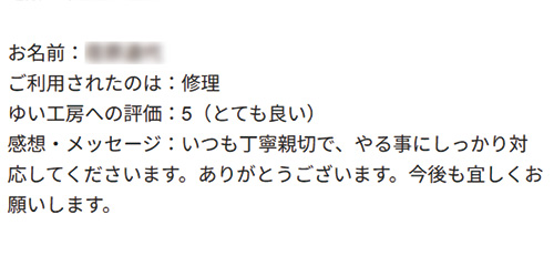 お客様の声は何よりの励みです、いつもありがとうございます!